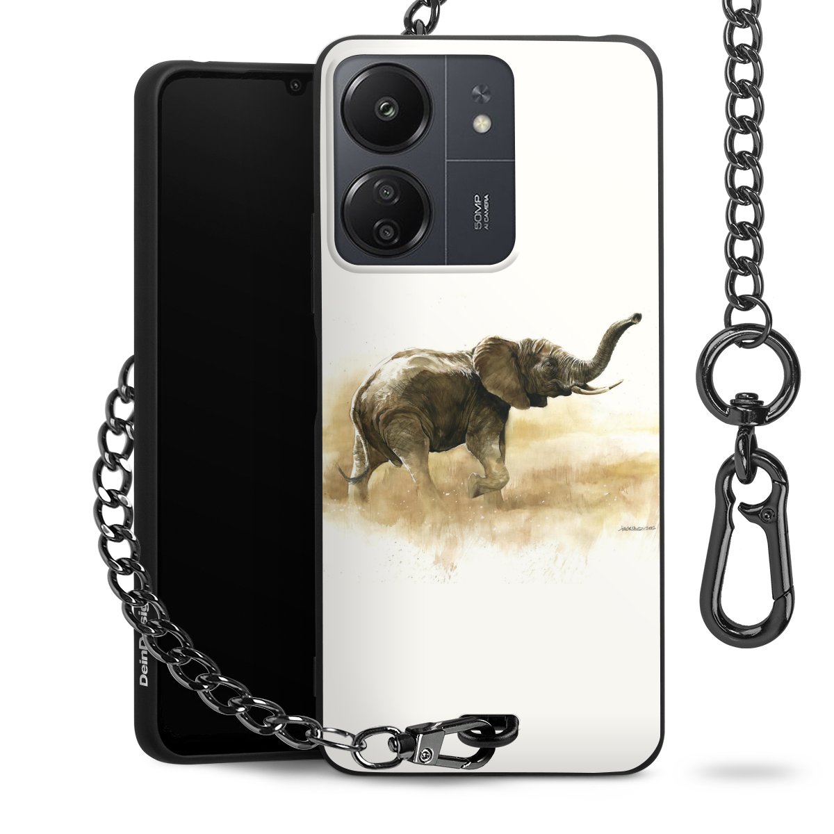 Die mattschwarze Silikon-Handyhülle besteht aus robustem TPU (thermoplastisches Polyurethan). Sie ist flexibel und schützt Dein Smartphone vor Stößen und Kratzern. Die Kette sowie der Karabinerhaken sind aus Metall in Gunmetal-Optik gefertigt. Für dieses Produkt kommen ausschließlich TÜV-geprüfte Materialien zum Einsatz.