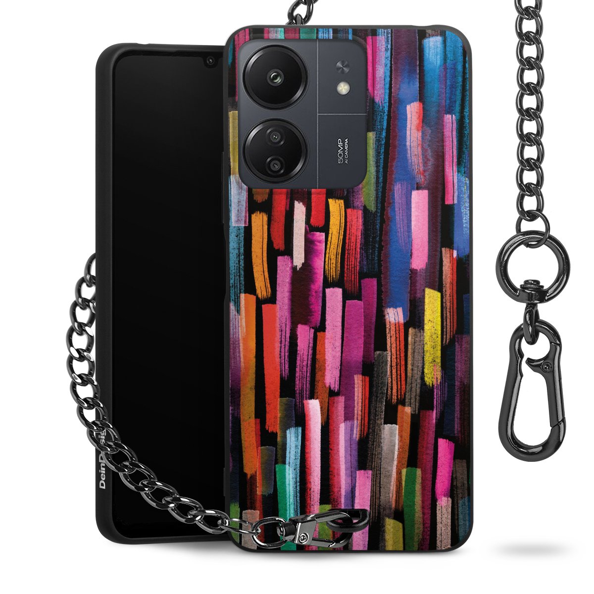 Die mattschwarze Silikon-Handyhülle besteht aus robustem TPU (thermoplastisches Polyurethan). Sie ist flexibel und schützt Dein Smartphone vor Stößen und Kratzern. Die Kette sowie der Karabinerhaken sind aus Metall in Gunmetal-Optik gefertigt. Für dieses Produkt kommen ausschließlich TÜV-geprüfte Materialien zum Einsatz.