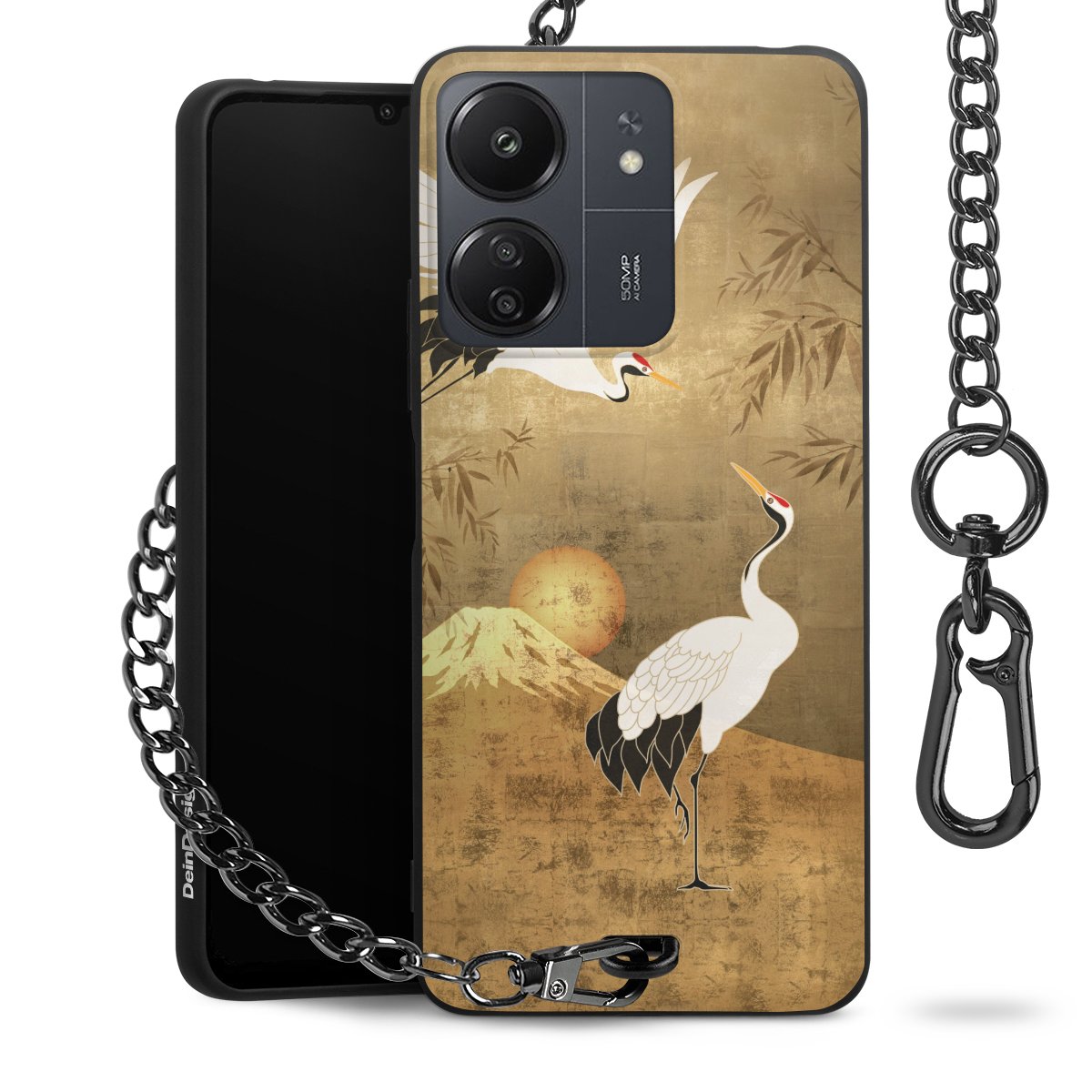 Die mattschwarze Silikon-Handyhülle besteht aus robustem TPU (thermoplastisches Polyurethan). Sie ist flexibel und schützt Dein Smartphone vor Stößen und Kratzern. Die Kette sowie der Karabinerhaken sind aus Metall in Gunmetal-Optik gefertigt. Für dieses Produkt kommen ausschließlich TÜV-geprüfte Materialien zum Einsatz.