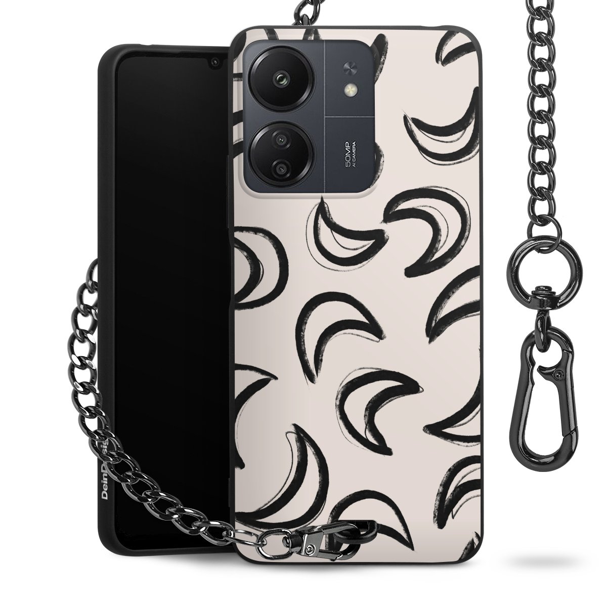 • Mattschwarze Handyhülle mit Metallkette