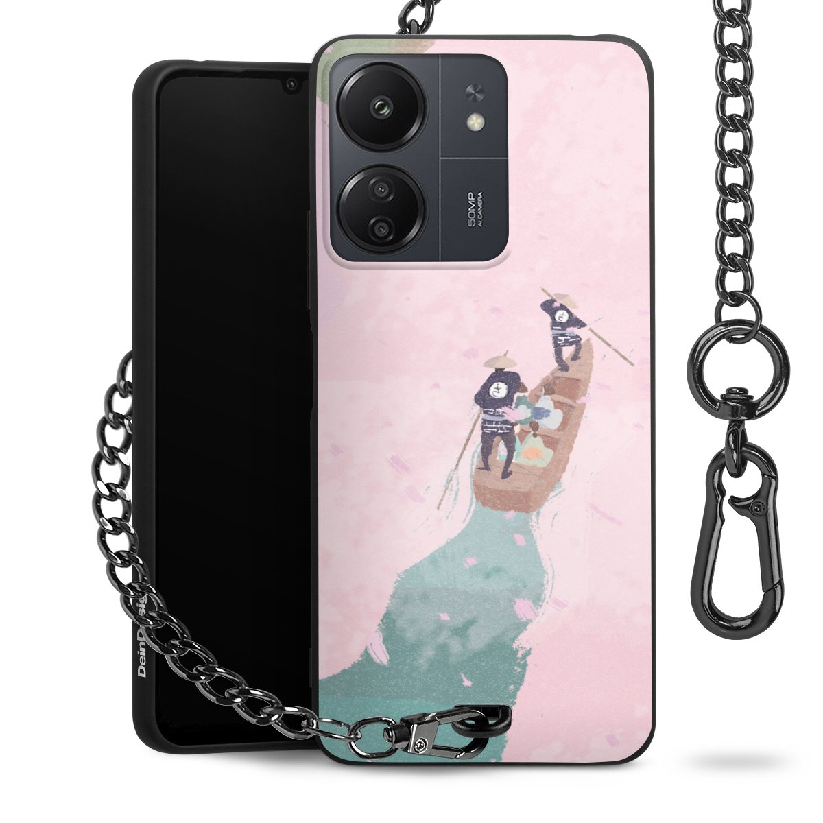 Die mattschwarze Silikon-Handyhülle besteht aus robustem TPU (thermoplastisches Polyurethan). Sie ist flexibel und schützt Dein Smartphone vor Stößen und Kratzern. Die Kette sowie der Karabinerhaken sind aus Metall in Gunmetal-Optik gefertigt. Für dieses Produkt kommen ausschließlich TÜV-geprüfte Materialien zum Einsatz.