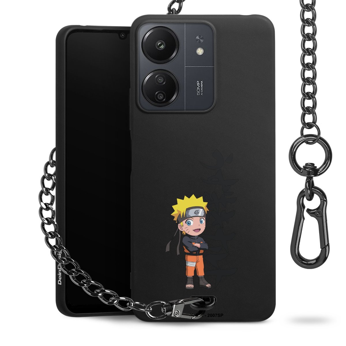 Die mattschwarze Silikon-Handyhülle besteht aus robustem TPU (thermoplastisches Polyurethan). Sie ist flexibel und schützt Dein Smartphone vor Stößen und Kratzern. Die Kette sowie der Karabinerhaken sind aus Metall in Gunmetal-Optik gefertigt. Für dieses Produkt kommen ausschließlich TÜV-geprüfte Materialien zum Einsatz.