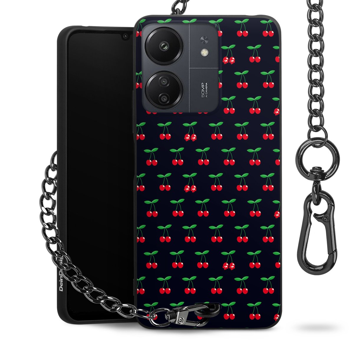 Die mattschwarze Silikon-Handyhülle besteht aus robustem TPU (thermoplastisches Polyurethan). Sie ist flexibel und schützt Dein Smartphone vor Stößen und Kratzern. Die Kette sowie der Karabinerhaken sind aus Metall in Gunmetal-Optik gefertigt. Für dieses Produkt kommen ausschließlich TÜV-geprüfte Materialien zum Einsatz.