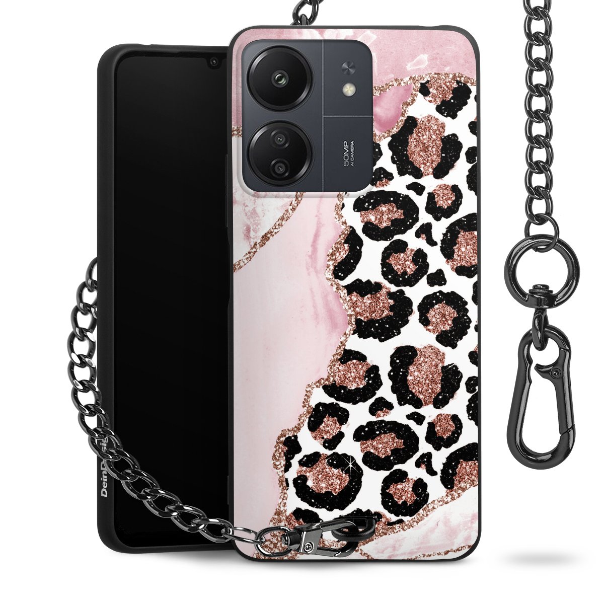 Die mattschwarze Silikon-Handyhülle besteht aus robustem TPU (thermoplastisches Polyurethan). Sie ist flexibel und schützt Dein Smartphone vor Stößen und Kratzern. Die Kette sowie der Karabinerhaken sind aus Metall in Gunmetal-Optik gefertigt. Für dieses Produkt kommen ausschließlich TÜV-geprüfte Materialien zum Einsatz.