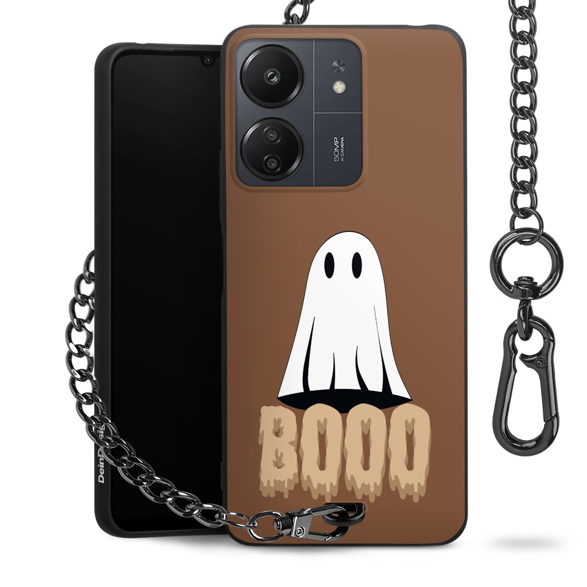 - Mattschwarze Handyhülle mit Metallkette