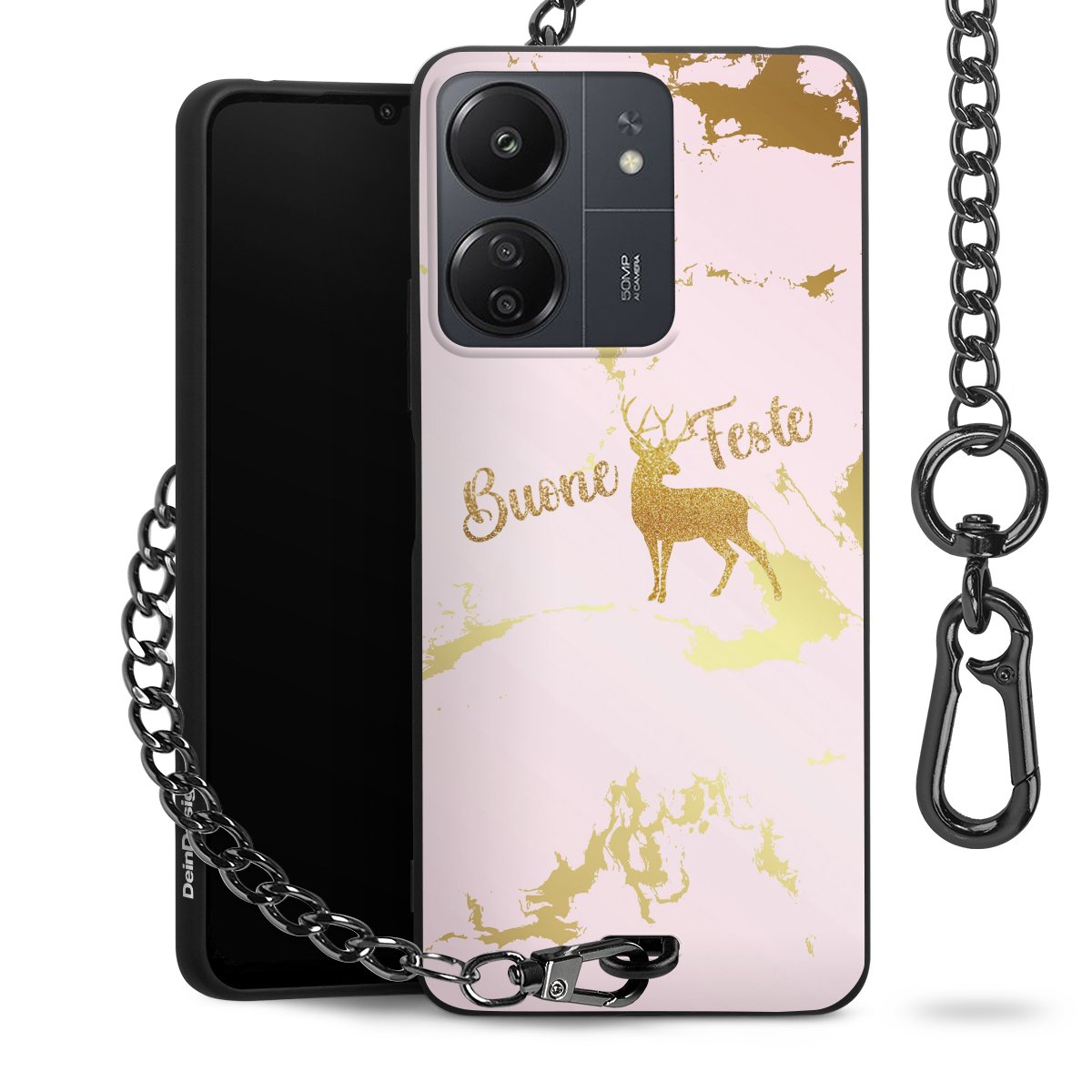 - Mattschwarze Handyhülle mit Metallkette