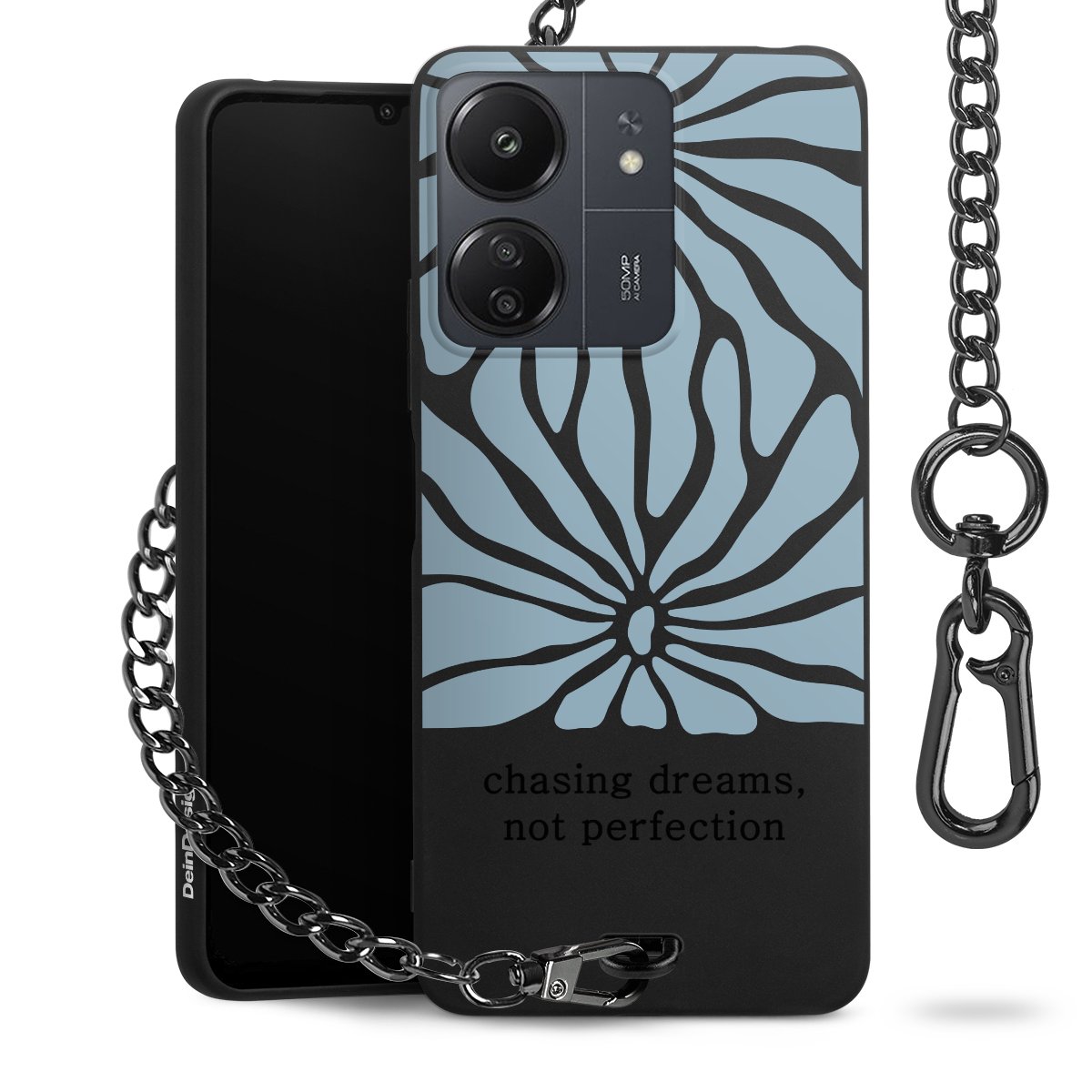 - Mattschwarze Handyhülle mit Metallkette