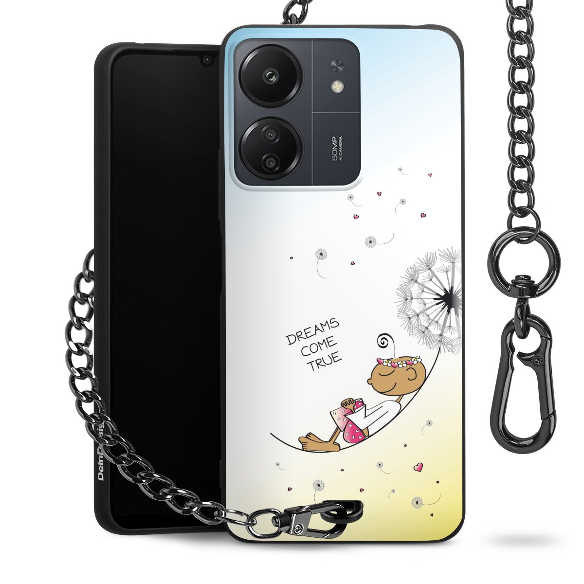 Die mattschwarze Silikon-Handyhülle besteht aus robustem TPU (thermoplastisches Polyurethan). Sie ist flexibel und schützt Dein Smartphone vor Stößen und Kratzern. Die Kette sowie der Karabinerhaken sind aus Metall in Gunmetal-Optik gefertigt. Für dieses Produkt kommen ausschließlich TÜV-geprüfte Materialien zum Einsatz.