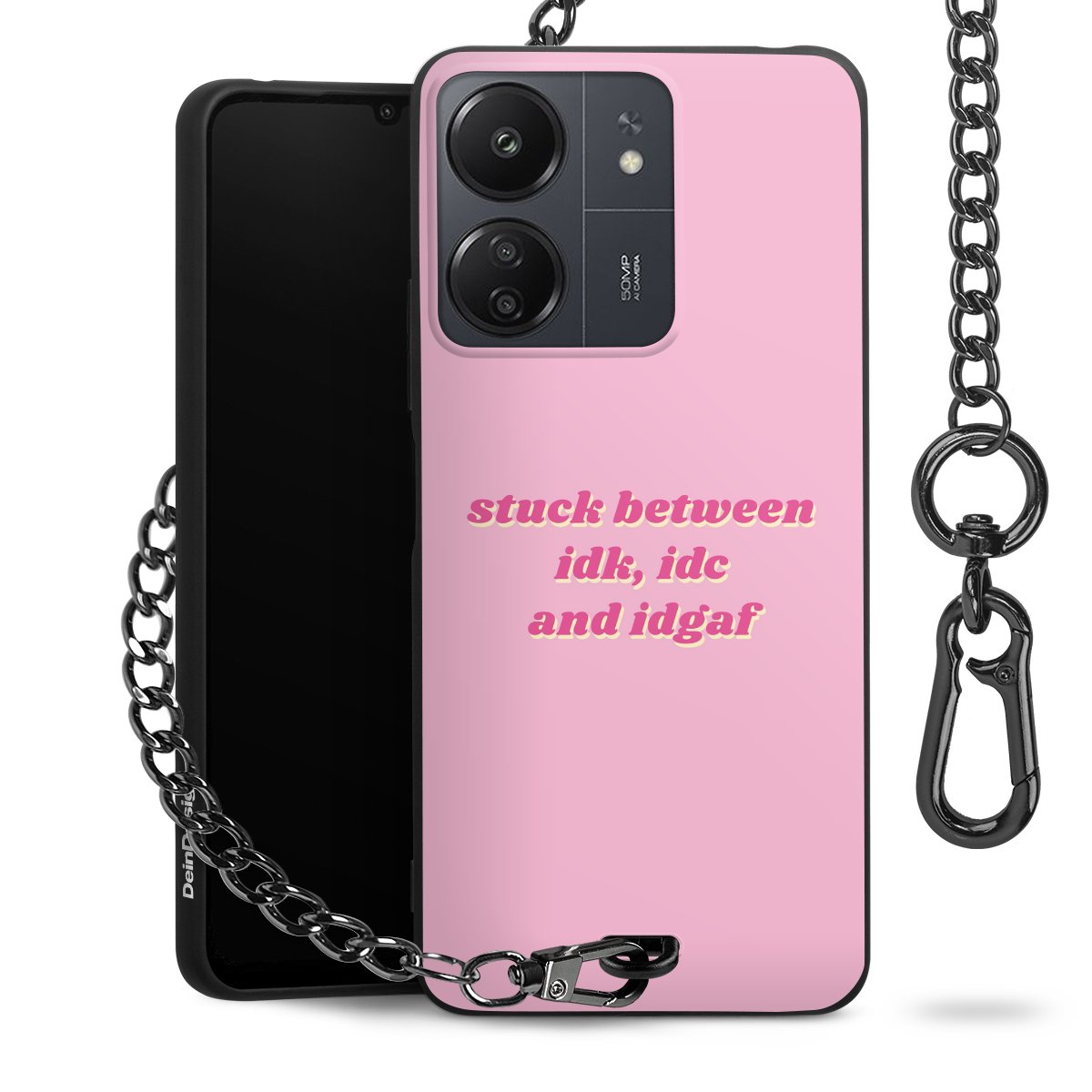 - Mattschwarze Handyhülle mit Metallkette