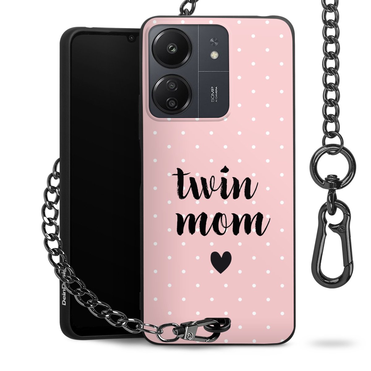 Die mattschwarze Silikon-Handyhülle besteht aus robustem TPU (thermoplastisches Polyurethan). Sie ist flexibel und schützt Dein Smartphone vor Stößen und Kratzern. Die Kette sowie der Karabinerhaken sind aus Metall in Gunmetal-Optik gefertigt. Für dieses Produkt kommen ausschließlich TÜV-geprüfte Materialien zum Einsatz.
