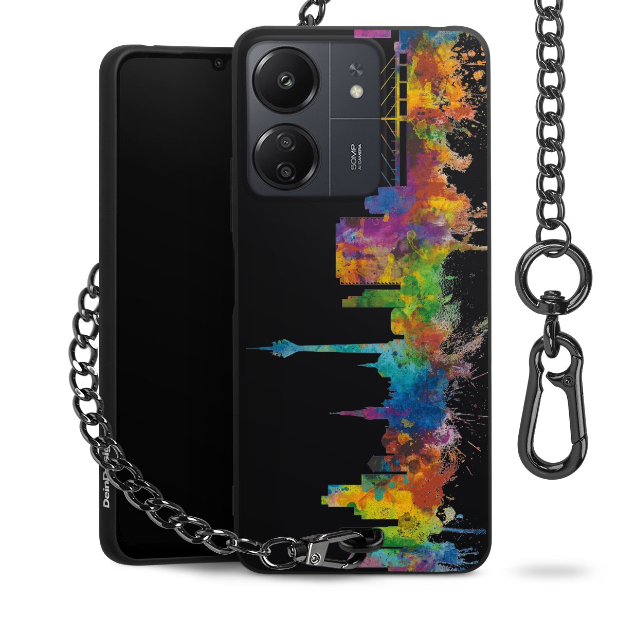 Die mattschwarze Silikon-Handyhülle besteht aus robustem TPU (thermoplastisches Polyurethan). Sie ist flexibel und schützt Dein Smartphone vor Stößen und Kratzern. Die Kette sowie der Karabinerhaken sind aus Metall in Gunmetal-Optik gefertigt. Für dieses Produkt kommen ausschließlich TÜV-geprüfte Materialien zum Einsatz.