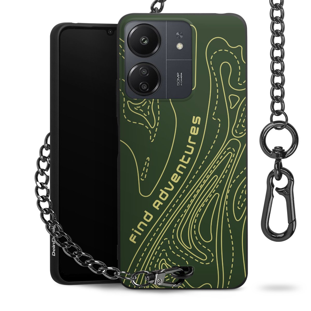 Die mattschwarze Silikon-Handyhülle besteht aus robustem TPU (thermoplastisches Polyurethan). Sie ist flexibel und schützt Dein Smartphone vor Stößen und Kratzern. Die Kette sowie der Karabinerhaken sind aus Metall in Gunmetal-Optik gefertigt. Für dieses Produkt kommen ausschließlich TÜV-geprüfte Materialien zum Einsatz.