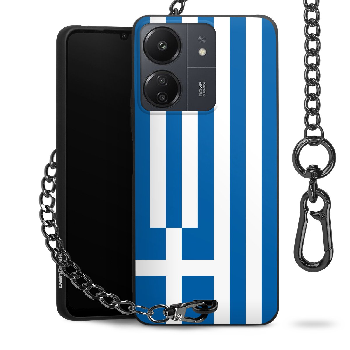 Die mattschwarze Silikon-Handyhülle besteht aus robustem TPU (thermoplastisches Polyurethan). Sie ist flexibel und schützt Dein Smartphone vor Stößen und Kratzern. Die Kette sowie der Karabinerhaken sind aus Metall in Gunmetal-Optik gefertigt. Für dieses Produkt kommen ausschließlich TÜV-geprüfte Materialien zum Einsatz.