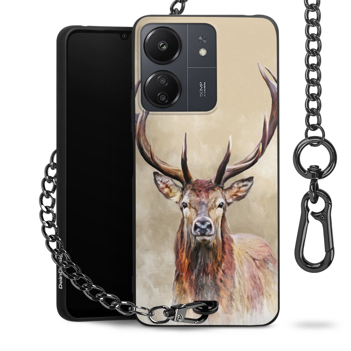 Die mattschwarze Silikon-Handyhülle besteht aus robustem TPU (thermoplastisches Polyurethan). Sie ist flexibel und schützt Dein Smartphone vor Stößen und Kratzern. Die Kette sowie der Karabinerhaken sind aus Metall in Gunmetal-Optik gefertigt. Für dieses Produkt kommen ausschließlich TÜV-geprüfte Materialien zum Einsatz.