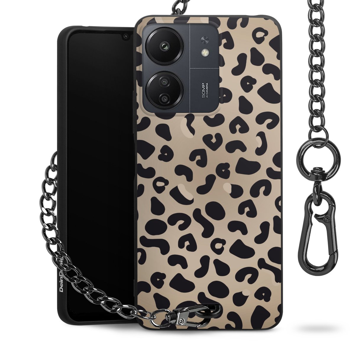 Die mattschwarze Silikon-Handyhülle besteht aus robustem TPU (thermoplastisches Polyurethan). Sie ist flexibel und schützt Dein Smartphone vor Stößen und Kratzern. Die Kette sowie der Karabinerhaken sind aus Metall in Gunmetal-Optik gefertigt. Für dieses Produkt kommen ausschließlich TÜV-geprüfte Materialien zum Einsatz.