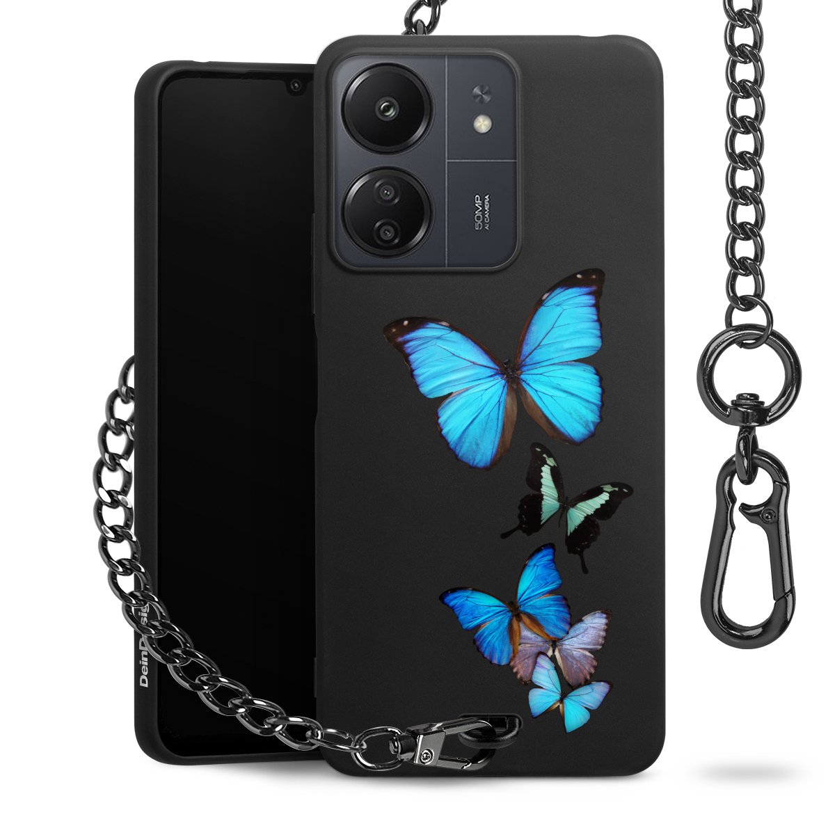 Die mattschwarze Silikon-Handyhülle besteht aus robustem TPU (thermoplastisches Polyurethan). Sie ist flexibel und schützt Dein Smartphone vor Stößen und Kratzern. Die Kette sowie der Karabinerhaken sind aus Metall in Gunmetal-Optik gefertigt. Für dieses Produkt kommen ausschließlich TÜV-geprüfte Materialien zum Einsatz.