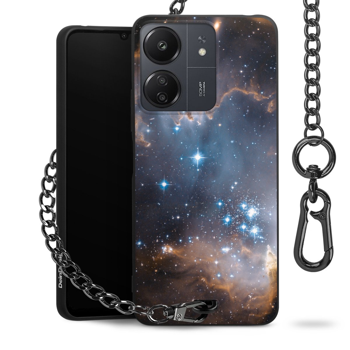 - Mattschwarze Handyhülle mit Metallkette