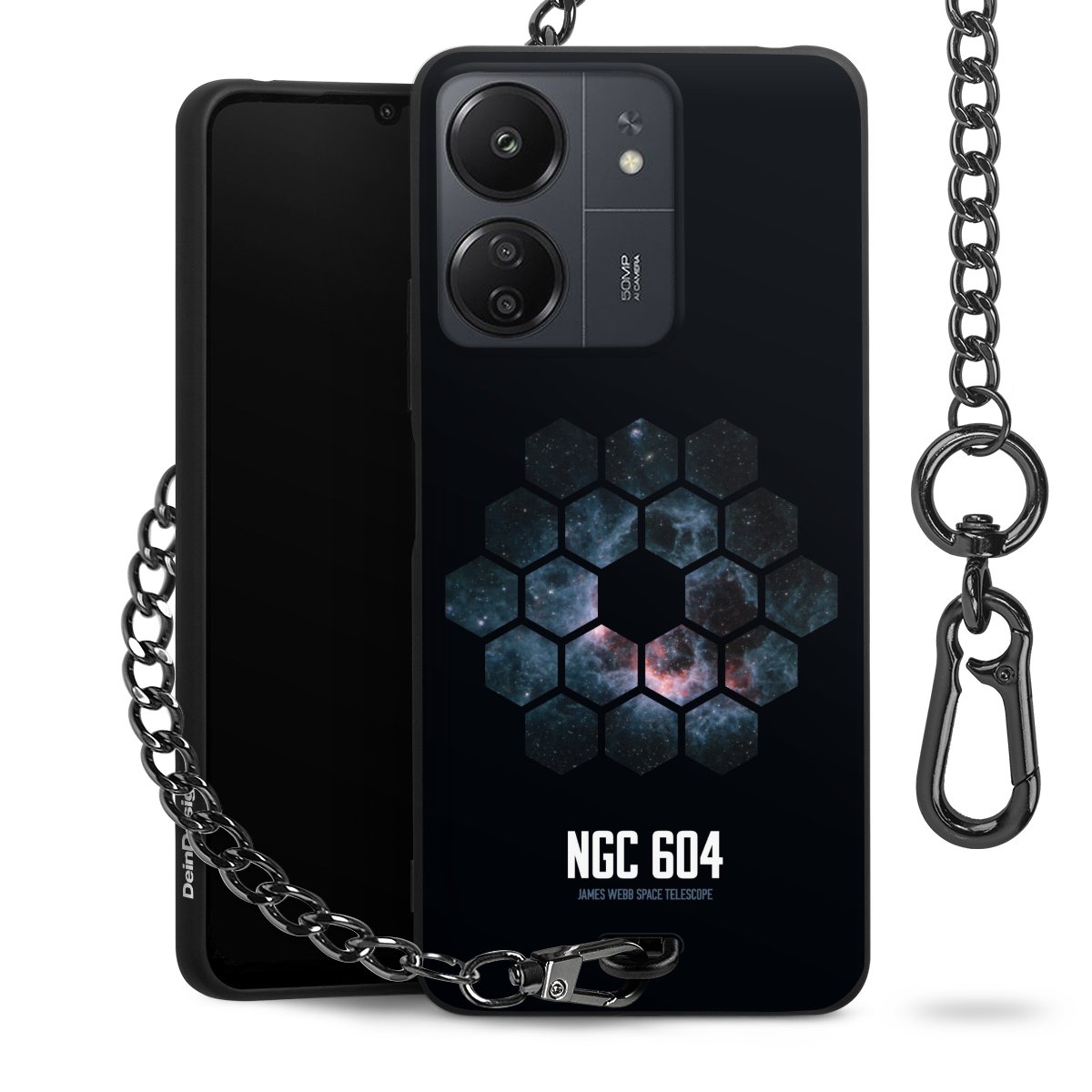 Die mattschwarze Silikon-Handyhülle besteht aus robustem TPU (thermoplastisches Polyurethan). Sie ist flexibel und schützt Dein Smartphone vor Stößen und Kratzern. Die Kette sowie der Karabinerhaken sind aus Metall in Gunmetal-Optik gefertigt. Für dieses Produkt kommen ausschließlich TÜV-geprüfte Materialien zum Einsatz.