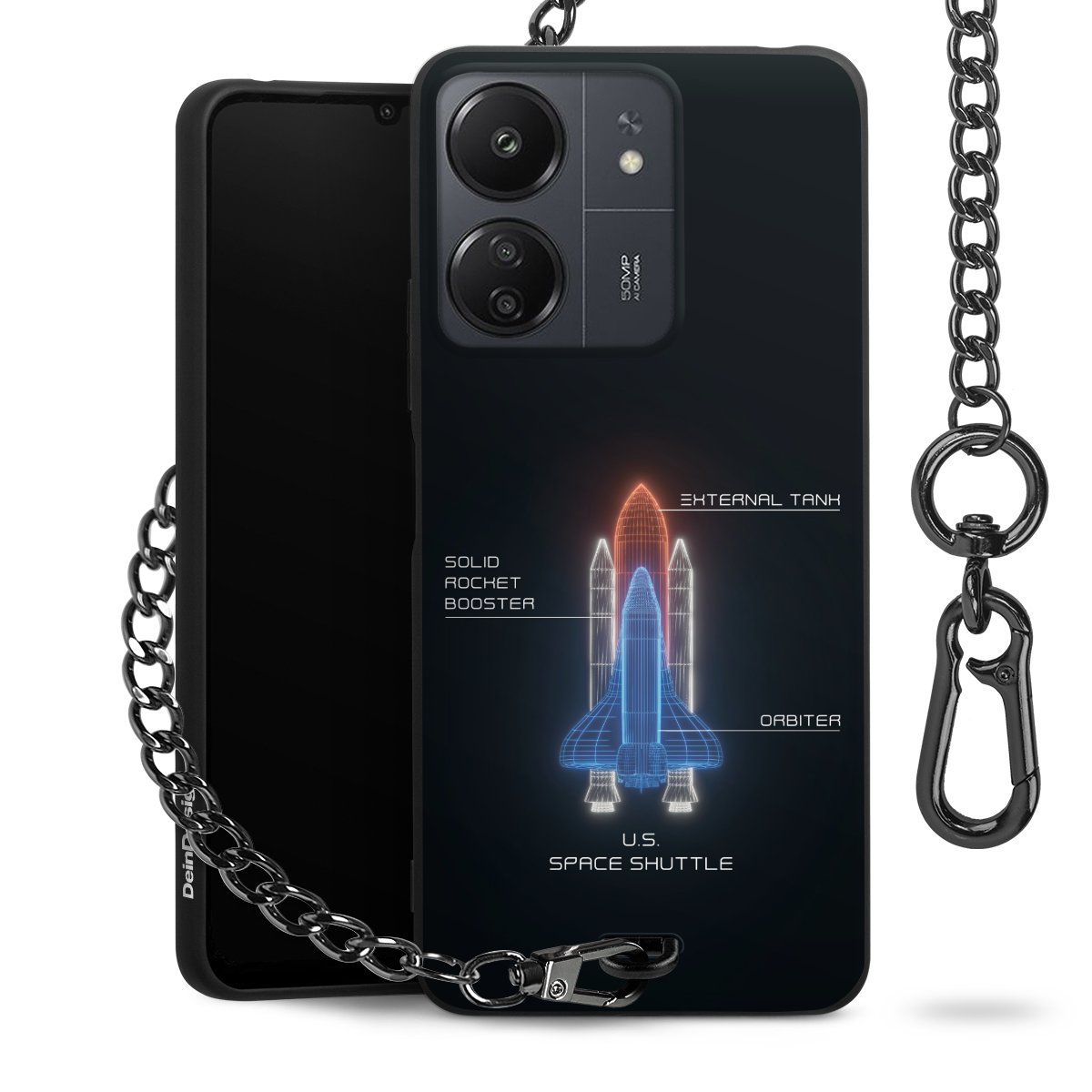 Die mattschwarze Silikon-Handyhülle besteht aus robustem TPU (thermoplastisches Polyurethan). Sie ist flexibel und schützt Dein Smartphone vor Stößen und Kratzern. Die Kette sowie der Karabinerhaken sind aus Metall in Gunmetal-Optik gefertigt. Für dieses Produkt kommen ausschließlich TÜV-geprüfte Materialien zum Einsatz.