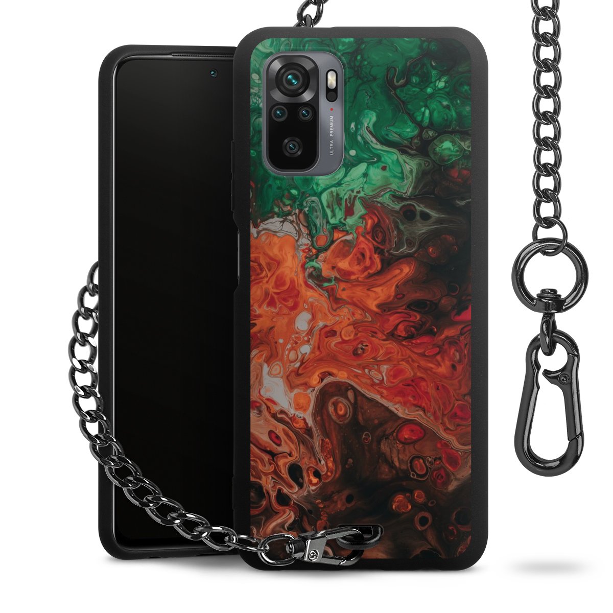 - Mattschwarze Handyhülle mit Metallkette