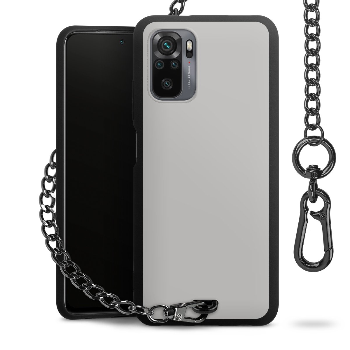 Die mattschwarze Silikon-Handyhülle besteht aus robustem TPU (thermoplastisches Polyurethan). Sie ist flexibel und schützt Dein Smartphone vor Stößen und Kratzern. Die Kette sowie der Karabinerhaken sind aus Metall in Gunmetal-Optik gefertigt. Für dieses Produkt kommen ausschließlich TÜV-geprüfte Materialien zum Einsatz.