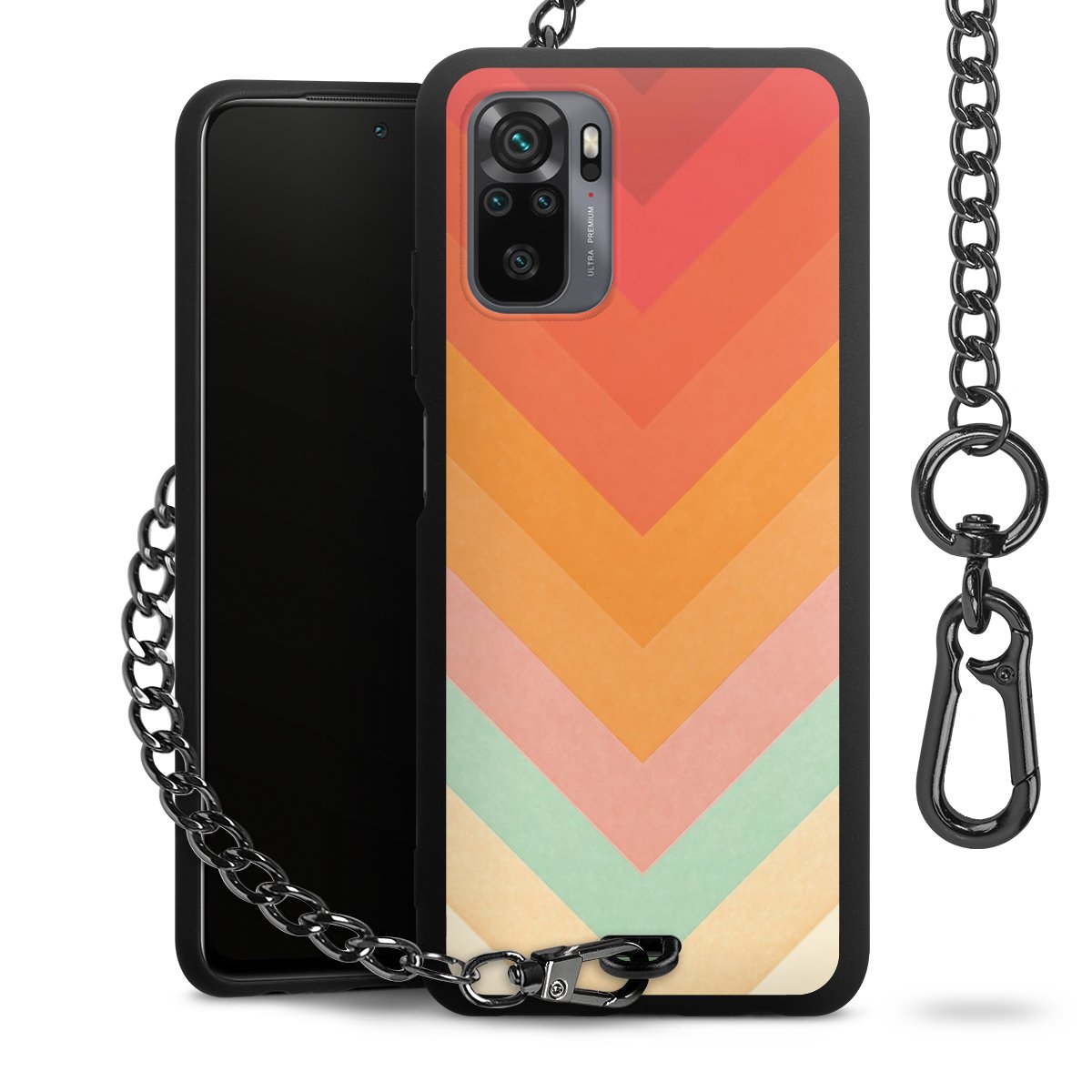 Die mattschwarze Silikon-Handyhülle besteht aus robustem TPU (thermoplastisches Polyurethan). Sie ist flexibel und schützt Dein Smartphone vor Stößen und Kratzern. Die Kette sowie der Karabinerhaken sind aus Metall in Gunmetal-Optik gefertigt. Für dieses Produkt kommen ausschließlich TÜV-geprüfte Materialien zum Einsatz.