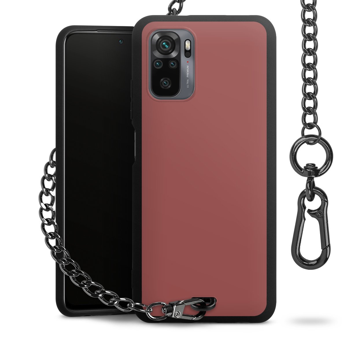 - Mattschwarze Handyhülle mit Metallkette