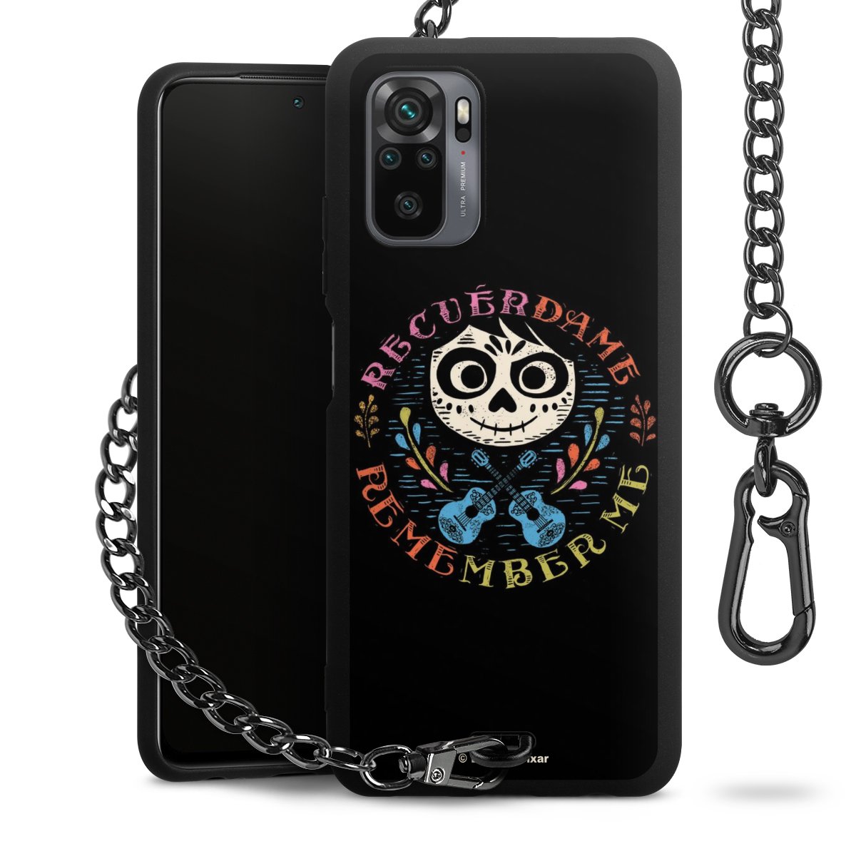 Die mattschwarze Silikon-Handyhülle besteht aus robustem TPU (thermoplastisches Polyurethan). Sie ist flexibel und schützt Dein Smartphone vor Stößen und Kratzern. Die Kette sowie der Karabinerhaken sind aus Metall in Gunmetal-Optik gefertigt. Für dieses Produkt kommen ausschließlich TÜV-geprüfte Materialien zum Einsatz.