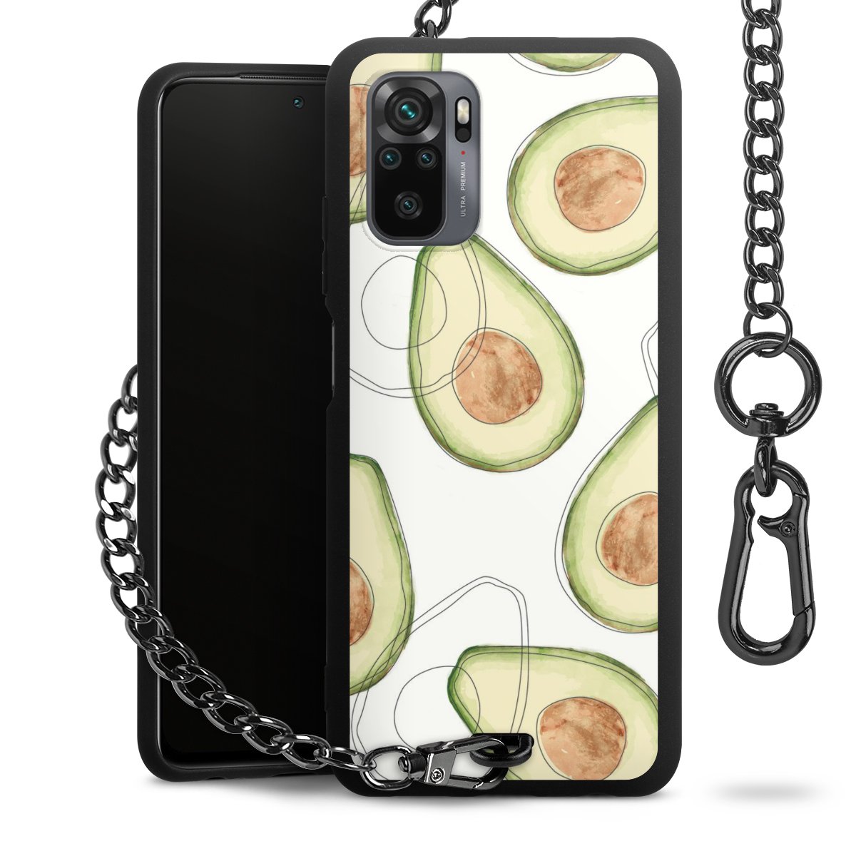 • Mattschwarze Handyhülle mit Metallkette