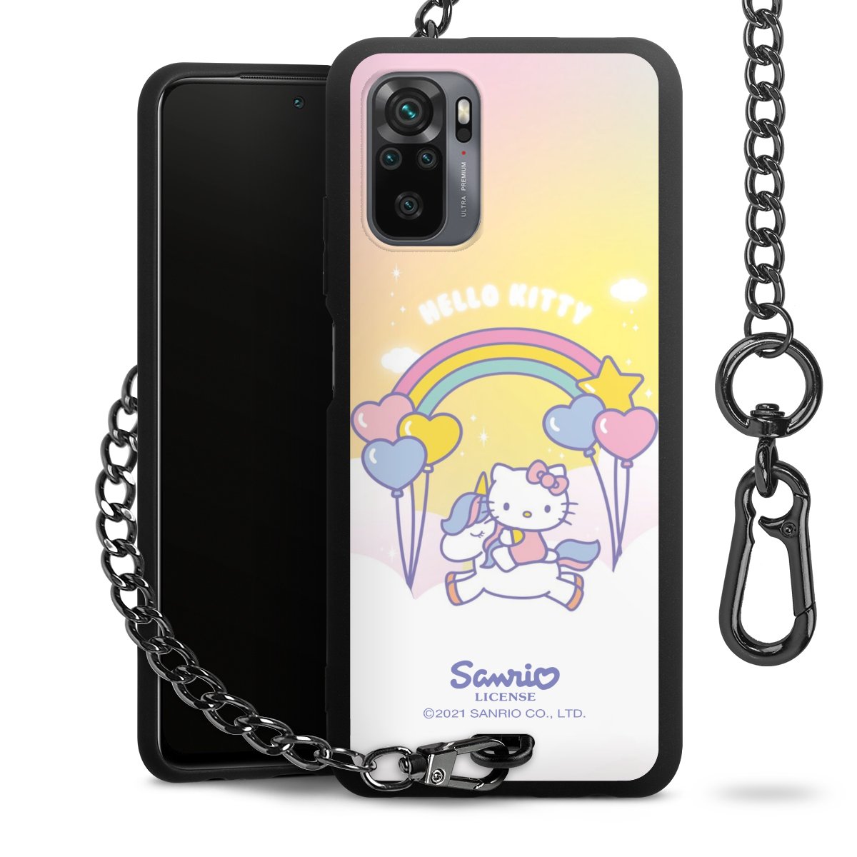 Die mattschwarze Silikon-Handyhülle besteht aus robustem TPU (thermoplastisches Polyurethan). Sie ist flexibel und schützt Dein Smartphone vor Stößen und Kratzern. Die Kette sowie der Karabinerhaken sind aus Metall in Gunmetal-Optik gefertigt. Für dieses Produkt kommen ausschließlich TÜV-geprüfte Materialien zum Einsatz.