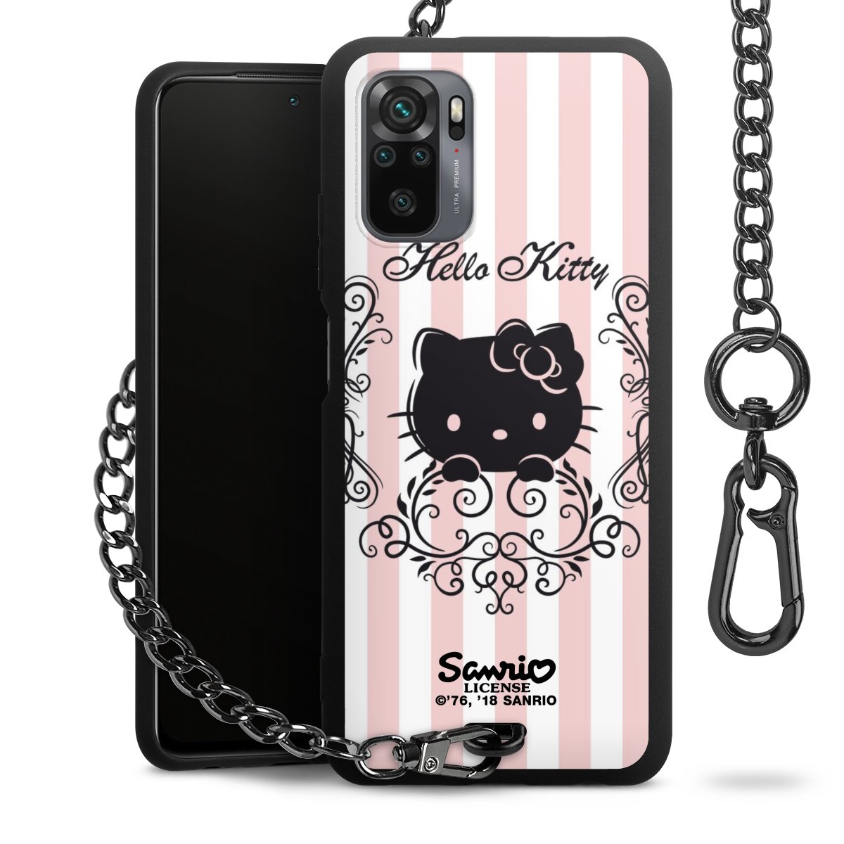 Die mattschwarze Silikon-Handyhülle besteht aus robustem TPU (thermoplastisches Polyurethan). Sie ist flexibel und schützt Dein Smartphone vor Stößen und Kratzern. Die Kette sowie der Karabinerhaken sind aus Metall in Gunmetal-Optik gefertigt. Für dieses Produkt kommen ausschließlich TÜV-geprüfte Materialien zum Einsatz.