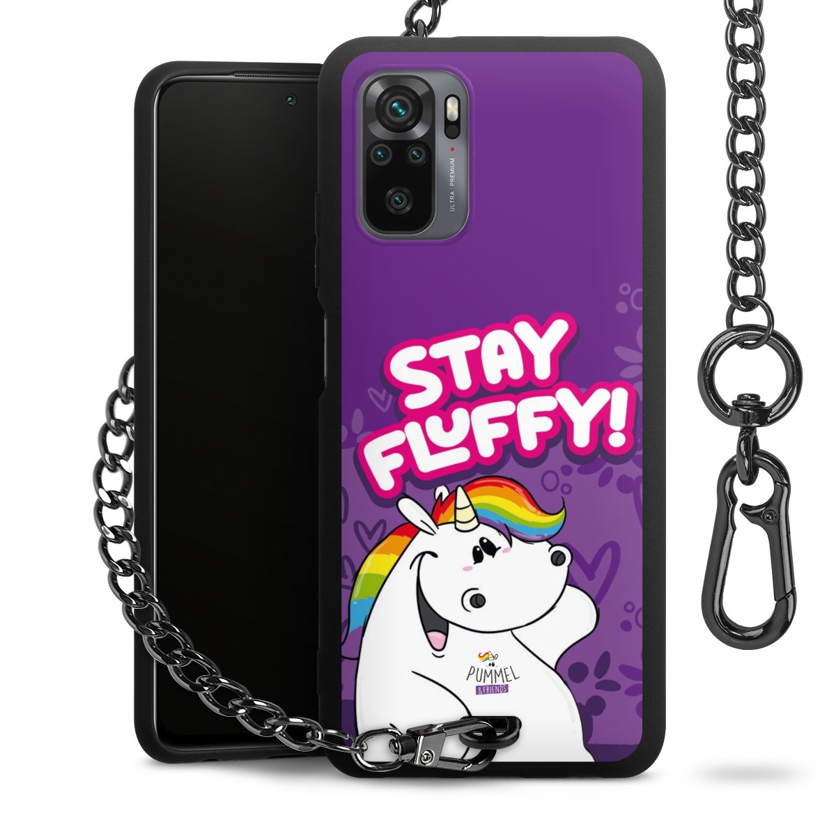 Die mattschwarze Silikon-Handyhülle besteht aus robustem TPU (thermoplastisches Polyurethan). Sie ist flexibel und schützt Dein Smartphone vor Stößen und Kratzern. Die Kette sowie der Karabinerhaken sind aus Metall in Gunmetal-Optik gefertigt. Für dieses Produkt kommen ausschließlich TÜV-geprüfte Materialien zum Einsatz.