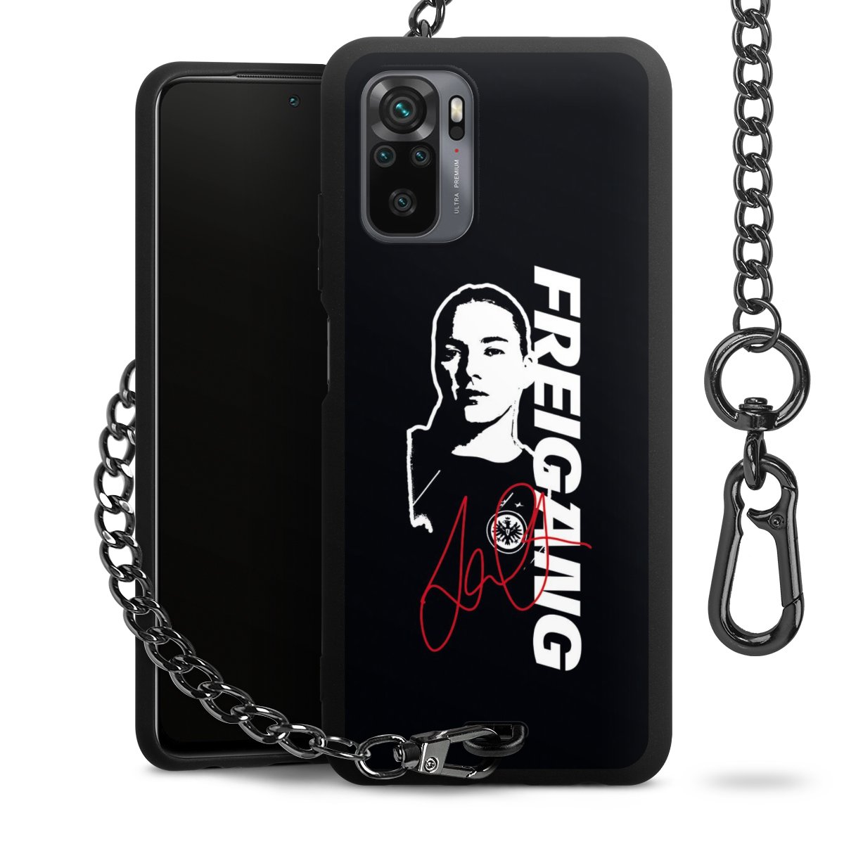 • Mattschwarze Handyhülle mit Metallkette