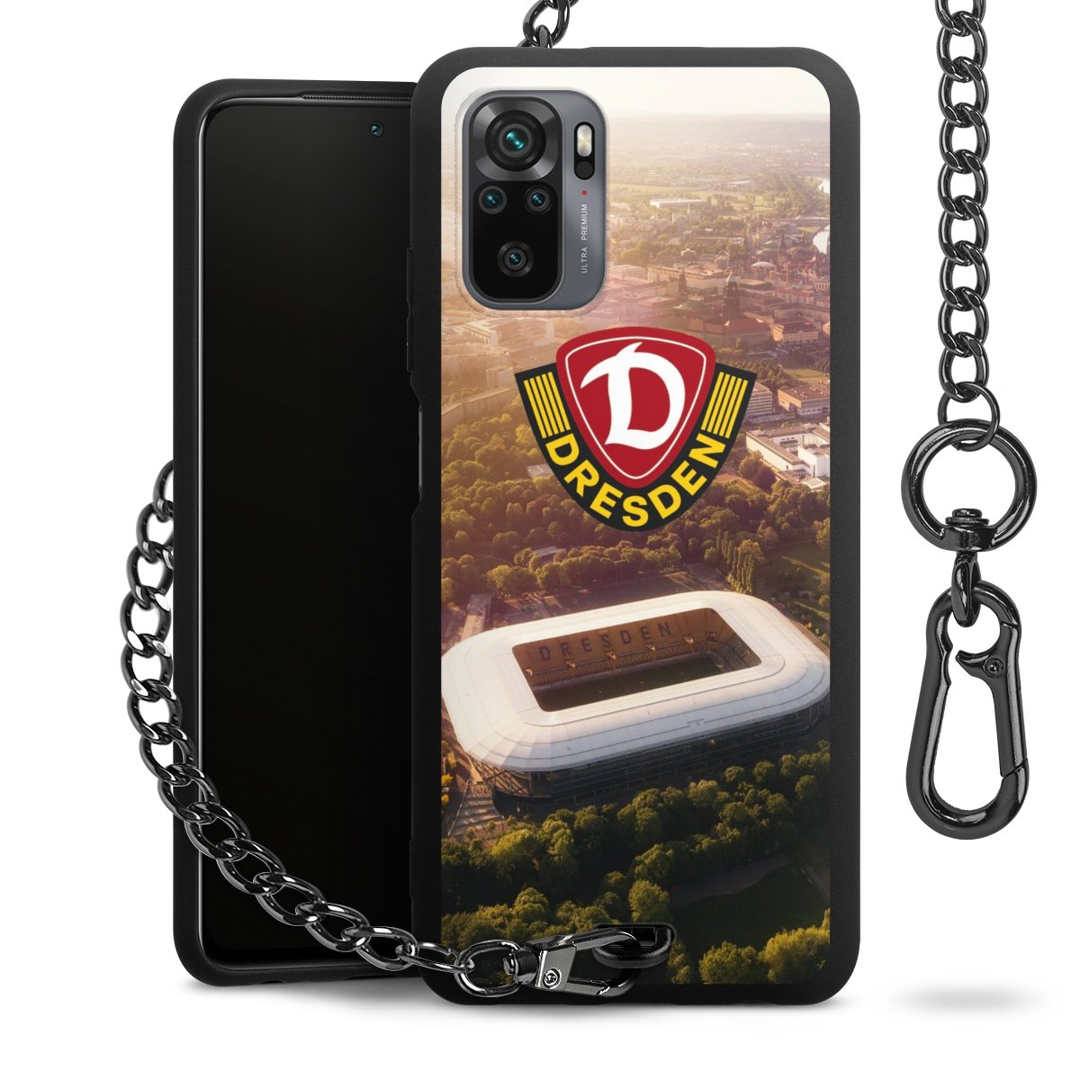 Die mattschwarze Silikon-Handyhülle besteht aus robustem TPU (thermoplastisches Polyurethan). Sie ist flexibel und schützt Dein Smartphone vor Stößen und Kratzern. Die Kette sowie der Karabinerhaken sind aus Metall in Gunmetal-Optik gefertigt. Für dieses Produkt kommen ausschließlich TÜV-geprüfte Materialien zum Einsatz.