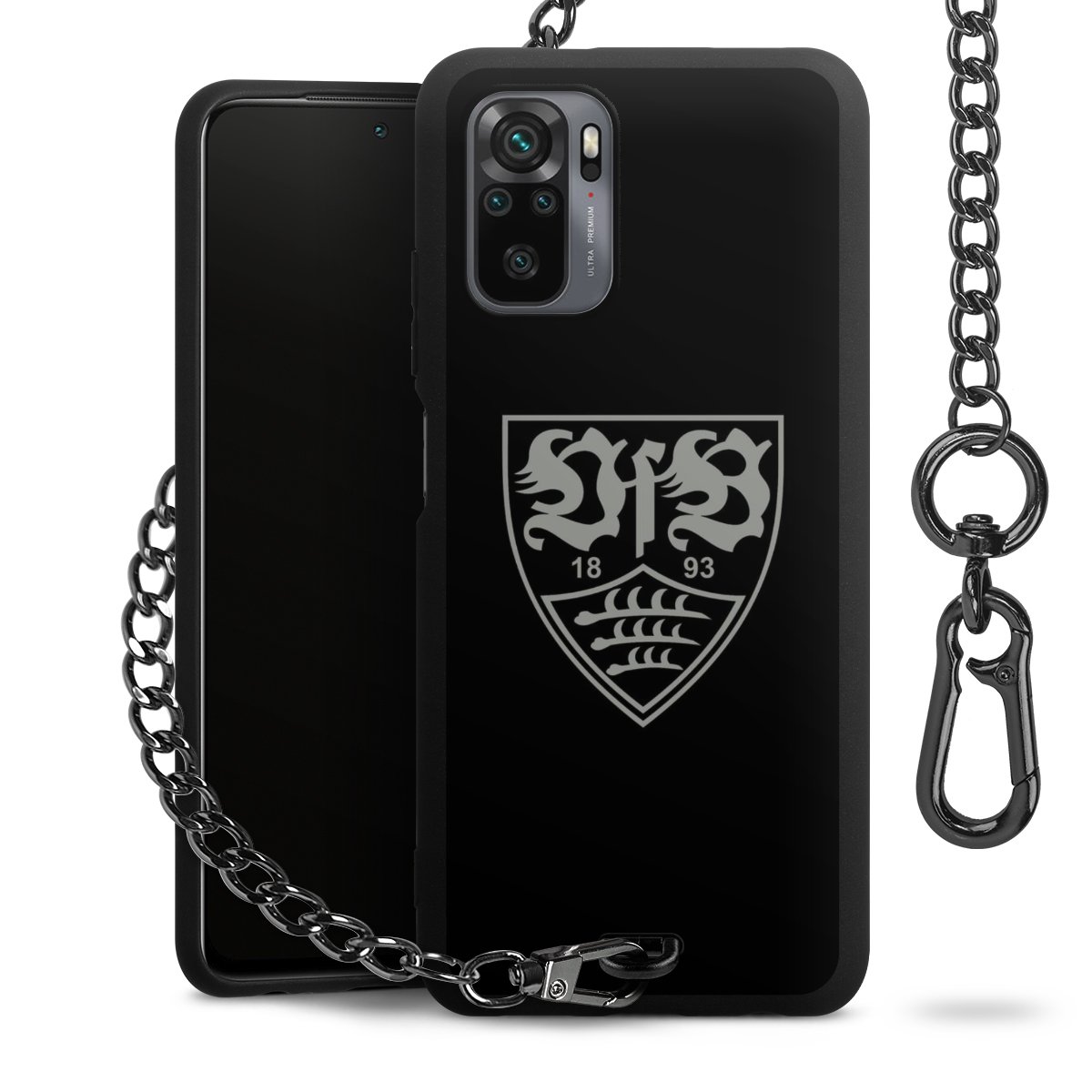 Die mattschwarze Silikon-Handyhülle besteht aus robustem TPU (thermoplastisches Polyurethan). Sie ist flexibel und schützt Dein Smartphone vor Stößen und Kratzern. Die Kette sowie der Karabinerhaken sind aus Metall in Gunmetal-Optik gefertigt. Für dieses Produkt kommen ausschließlich TÜV-geprüfte Materialien zum Einsatz.