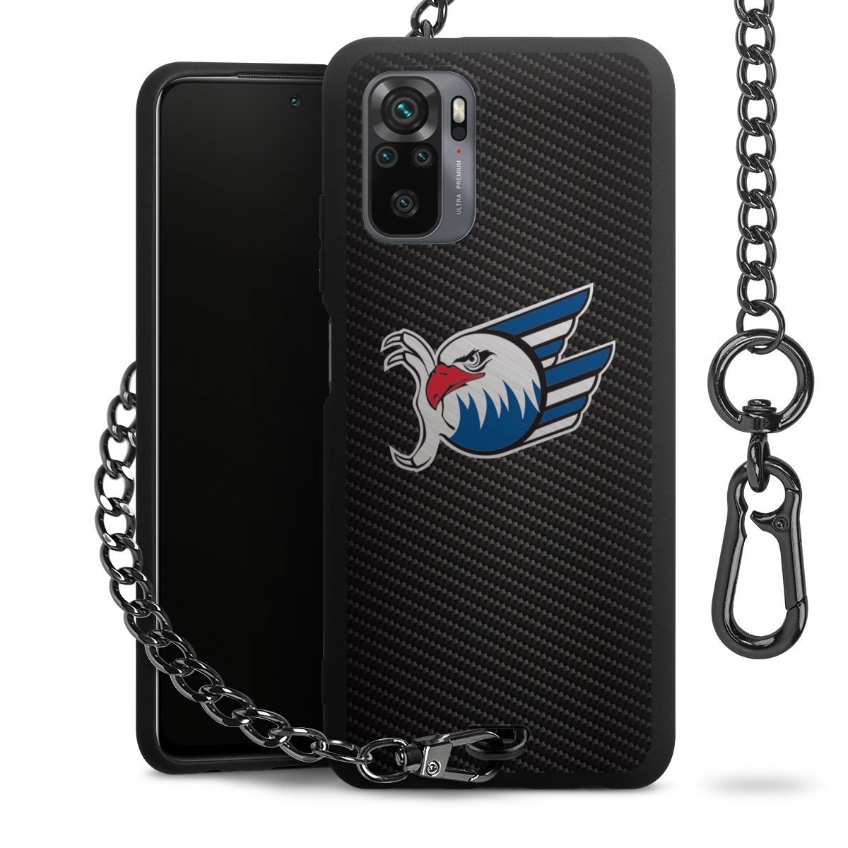 • Mattschwarze Handyhülle mit Metallkette