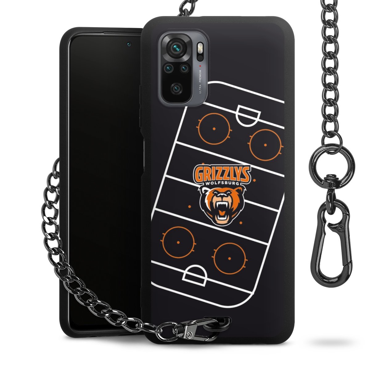 Die mattschwarze Silikon-Handyhülle besteht aus robustem TPU (thermoplastisches Polyurethan). Sie ist flexibel und schützt Dein Smartphone vor Stößen und Kratzern. Die Kette sowie der Karabinerhaken sind aus Metall in Gunmetal-Optik gefertigt. Für dieses Produkt kommen ausschließlich TÜV-geprüfte Materialien zum Einsatz.
