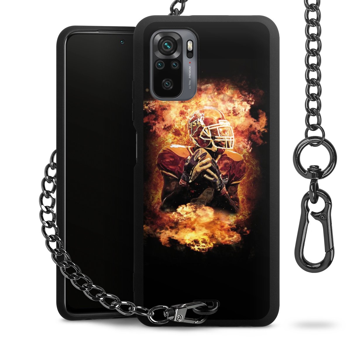Die mattschwarze Silikon-Handyhülle besteht aus robustem TPU (thermoplastisches Polyurethan). Sie ist flexibel und schützt Dein Smartphone vor Stößen und Kratzern. Die Kette sowie der Karabinerhaken sind aus Metall in Gunmetal-Optik gefertigt. Für dieses Produkt kommen ausschließlich TÜV-geprüfte Materialien zum Einsatz.