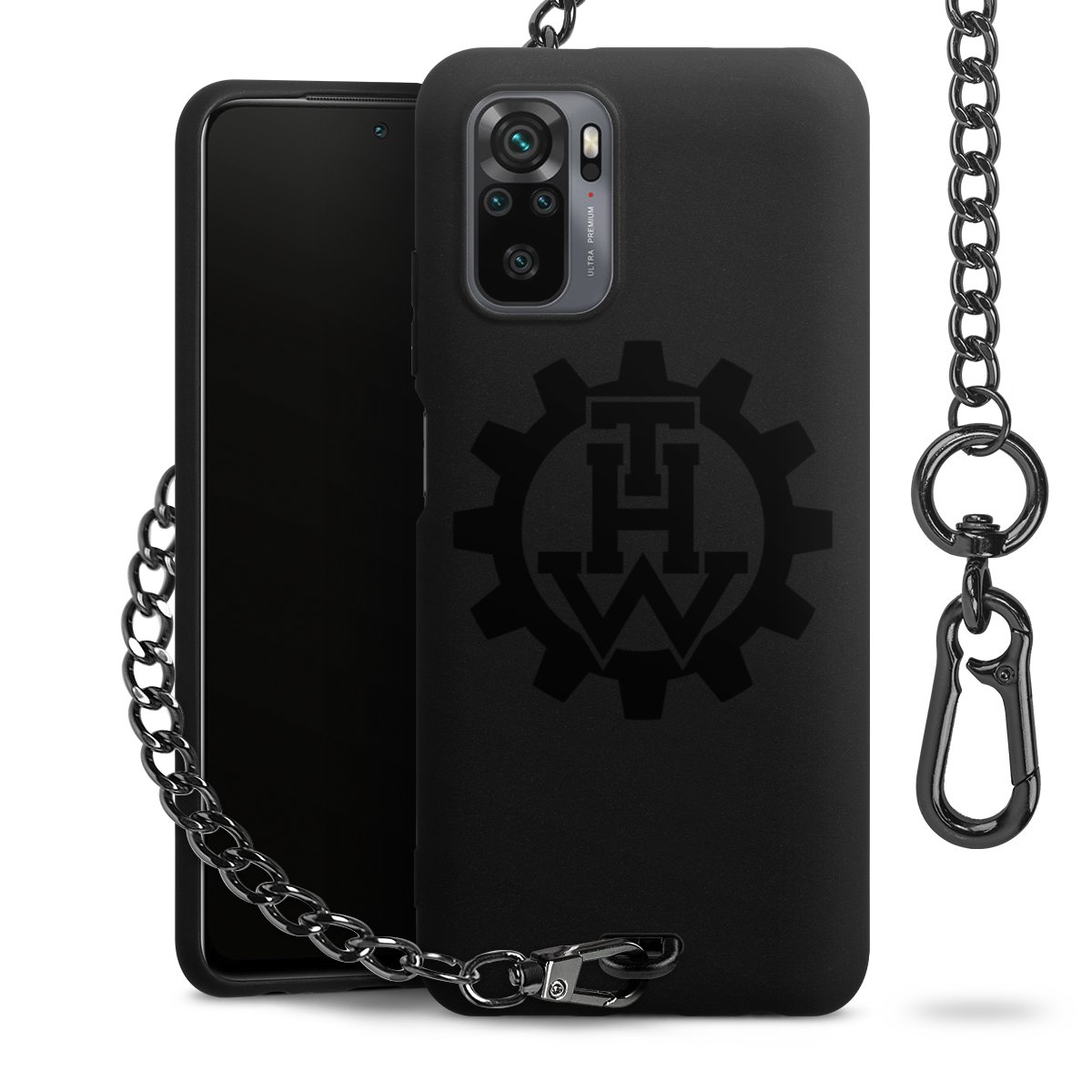 Die mattschwarze Silikon-Handyhülle besteht aus robustem TPU (thermoplastisches Polyurethan). Sie ist flexibel und schützt Dein Smartphone vor Stößen und Kratzern. Die Kette sowie der Karabinerhaken sind aus Metall in Gunmetal-Optik gefertigt. Für dieses Produkt kommen ausschließlich TÜV-geprüfte Materialien zum Einsatz.