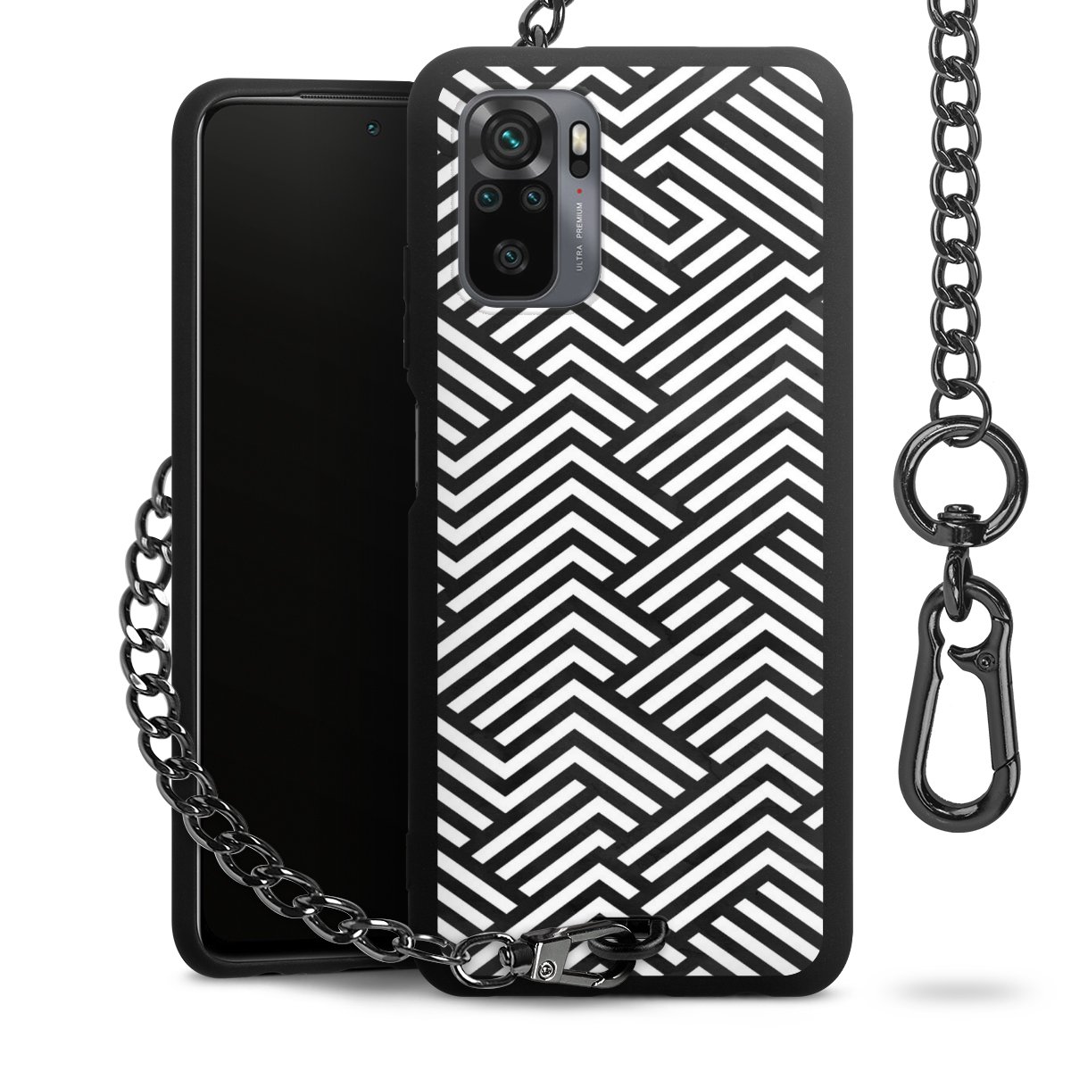 • Mattschwarze Handyhülle mit Metallkette