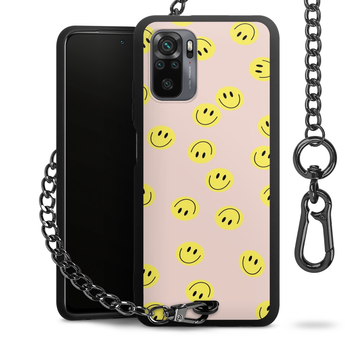 Die mattschwarze Silikon-Handyhülle besteht aus robustem TPU (thermoplastisches Polyurethan). Sie ist flexibel und schützt Dein Smartphone vor Stößen und Kratzern. Die Kette sowie der Karabinerhaken sind aus Metall in Gunmetal-Optik gefertigt. Für dieses Produkt kommen ausschließlich TÜV-geprüfte Materialien zum Einsatz.