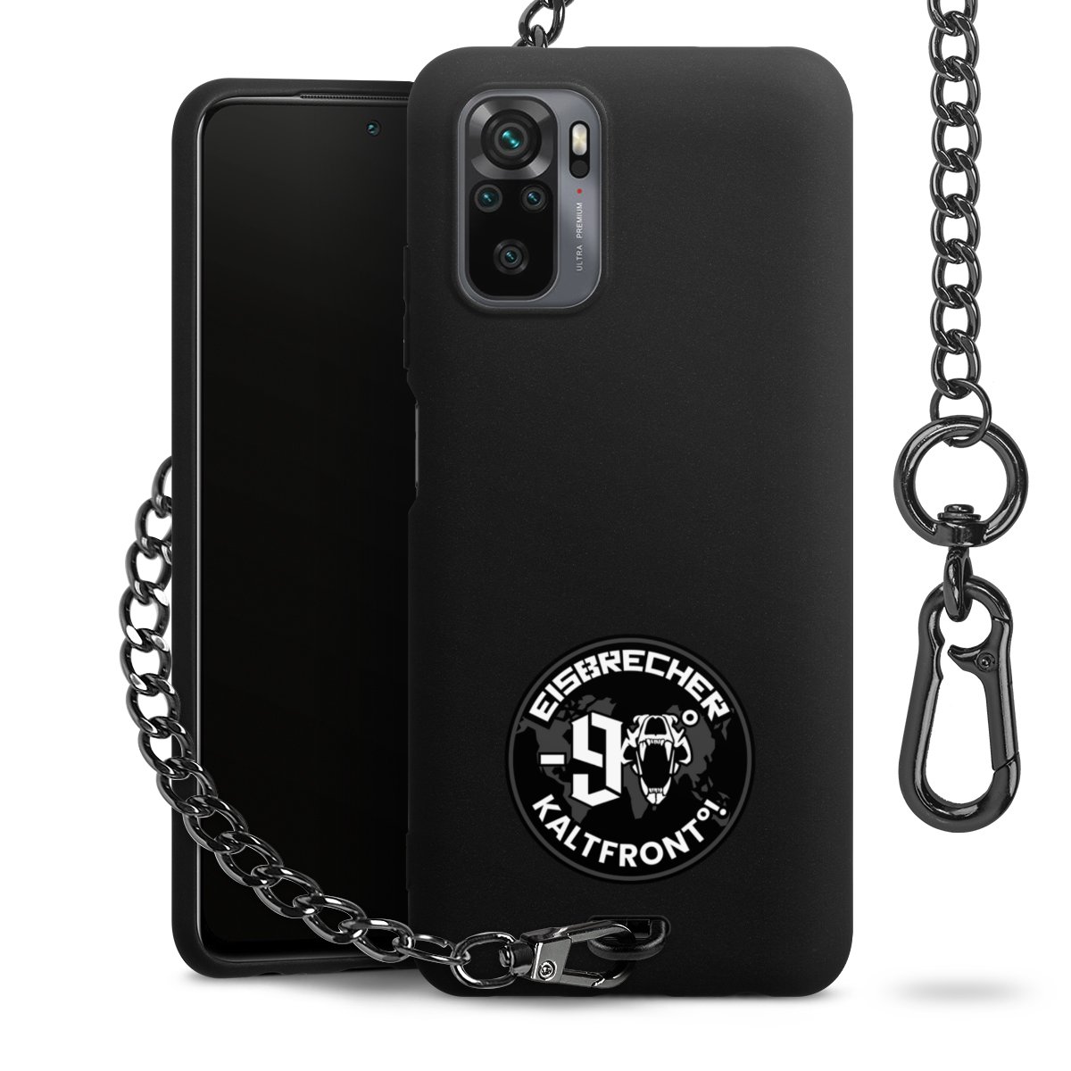 • Mattschwarze Handyhülle mit Metallkette