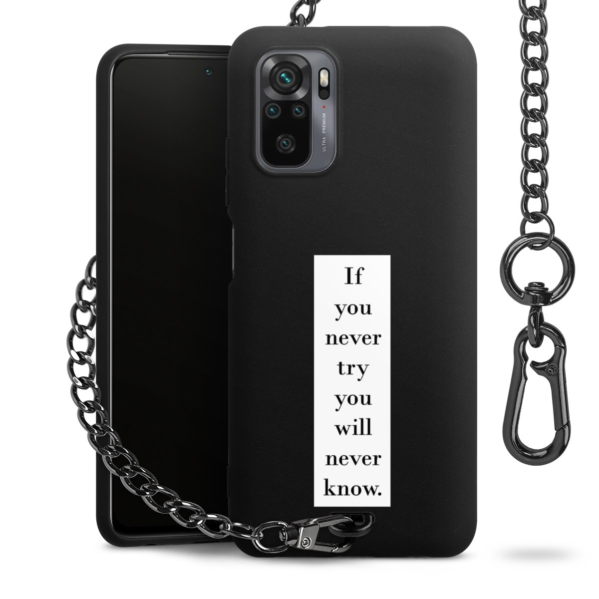 - Mattschwarze Handyhülle mit Metallkette