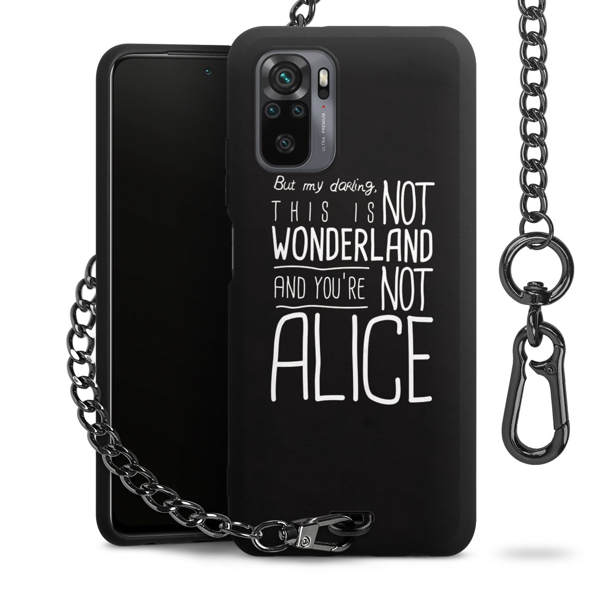 Die mattschwarze Silikon-Handyhülle besteht aus robustem TPU (thermoplastisches Polyurethan). Sie ist flexibel und schützt Dein Smartphone vor Stößen und Kratzern. Die Kette sowie der Karabinerhaken sind aus Metall in Gunmetal-Optik gefertigt. Für dieses Produkt kommen ausschließlich TÜV-geprüfte Materialien zum Einsatz.