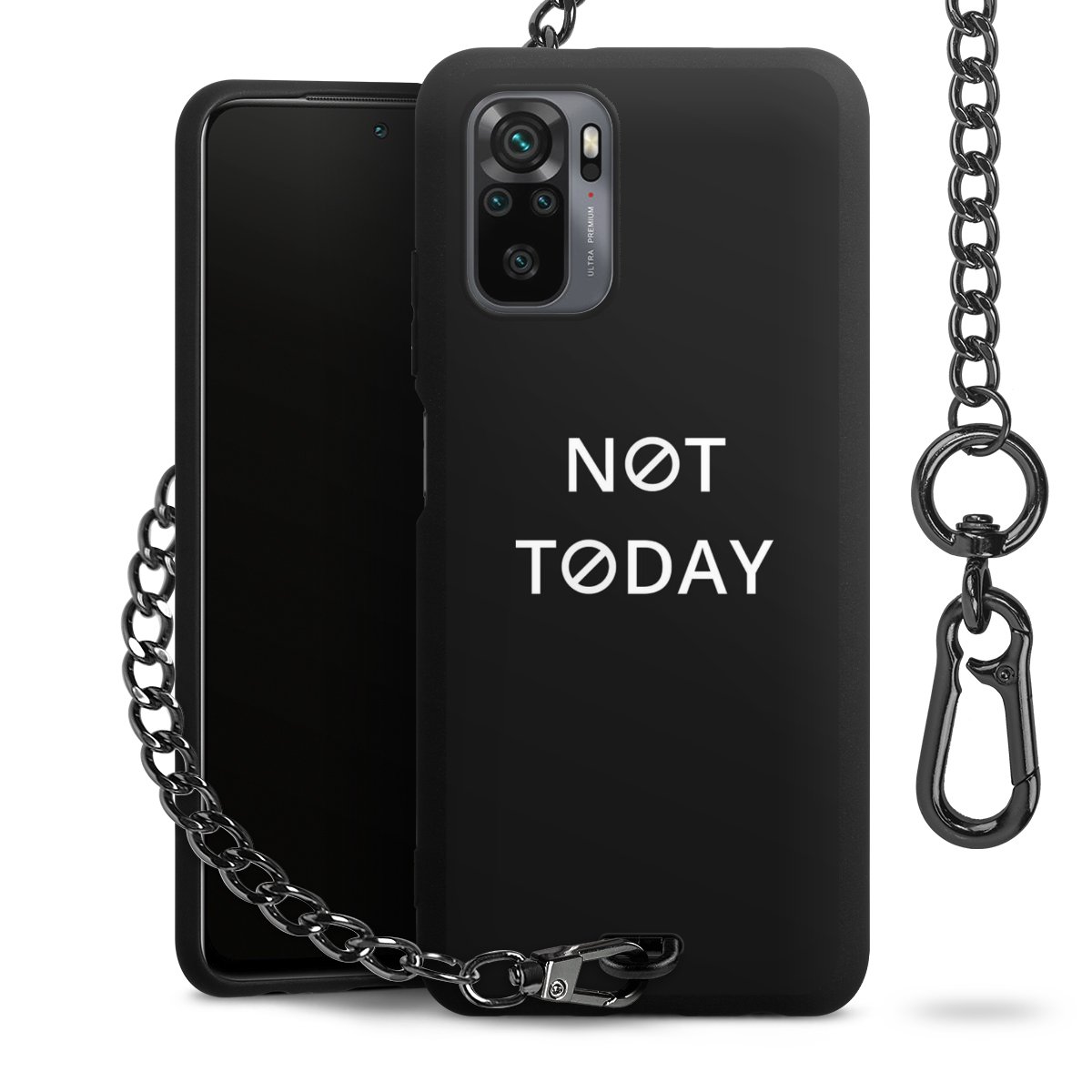 - Mattschwarze Handyhülle mit Metallkette