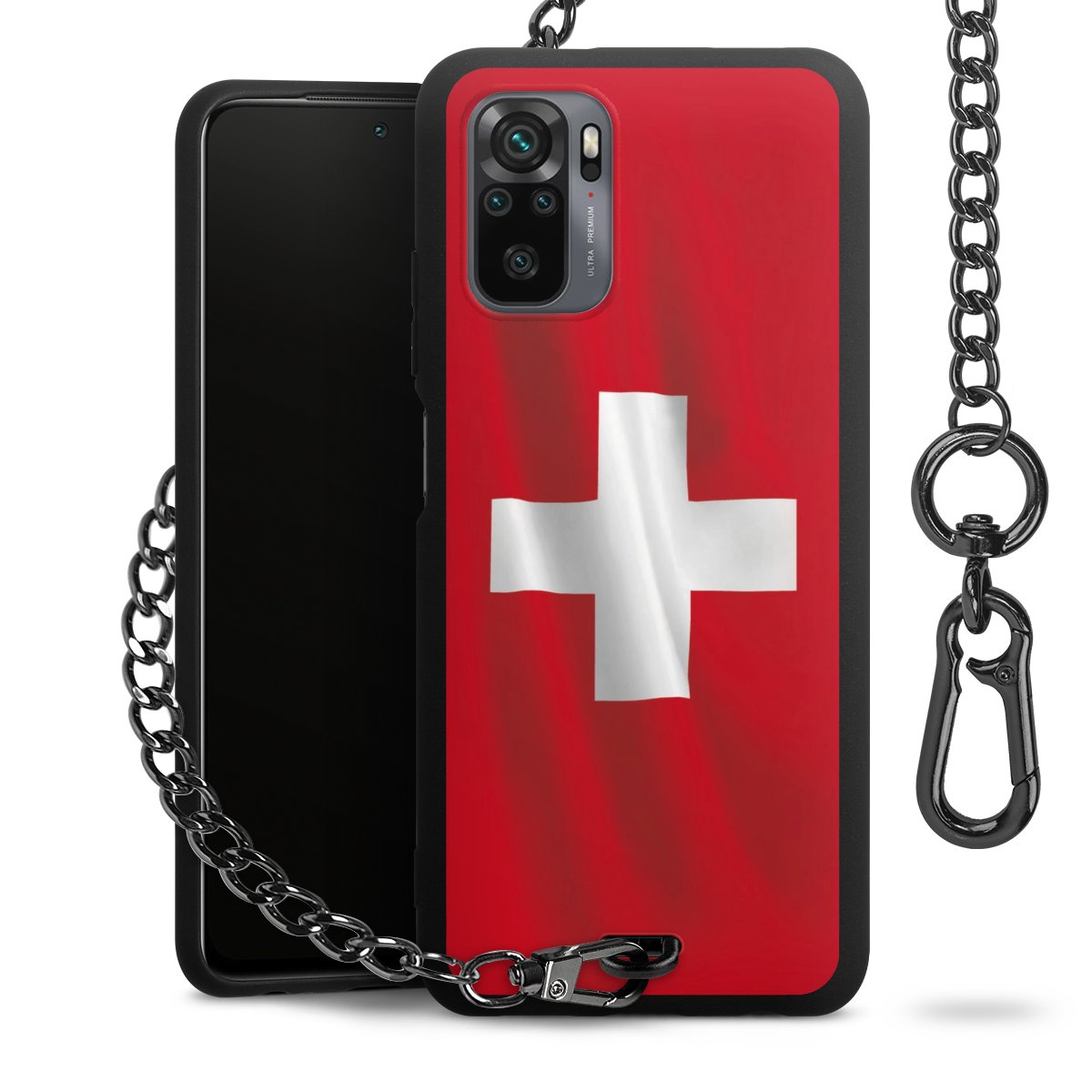 Die mattschwarze Silikon-Handyhülle besteht aus robustem TPU (thermoplastisches Polyurethan). Sie ist flexibel und schützt Dein Smartphone vor Stößen und Kratzern. Die Kette sowie der Karabinerhaken sind aus Metall in Gunmetal-Optik gefertigt. Für dieses Produkt kommen ausschließlich TÜV-geprüfte Materialien zum Einsatz.
