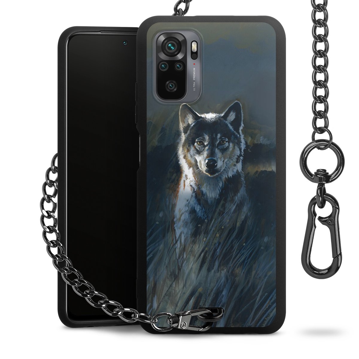 Die mattschwarze Silikon-Handyhülle besteht aus robustem TPU (thermoplastisches Polyurethan). Sie ist flexibel und schützt Dein Smartphone vor Stößen und Kratzern. Die Kette sowie der Karabinerhaken sind aus Metall in Gunmetal-Optik gefertigt. Für dieses Produkt kommen ausschließlich TÜV-geprüfte Materialien zum Einsatz.