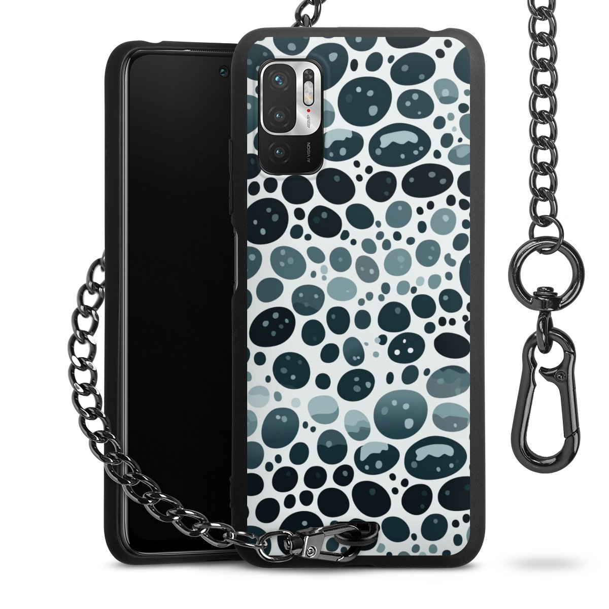 Die mattschwarze Silikon-Handyhülle besteht aus robustem TPU (thermoplastisches Polyurethan). Sie ist flexibel und schützt Dein Smartphone vor Stößen und Kratzern. Die Kette sowie der Karabinerhaken sind aus Metall in Gunmetal-Optik gefertigt. Für dieses Produkt kommen ausschließlich TÜV-geprüfte Materialien zum Einsatz.