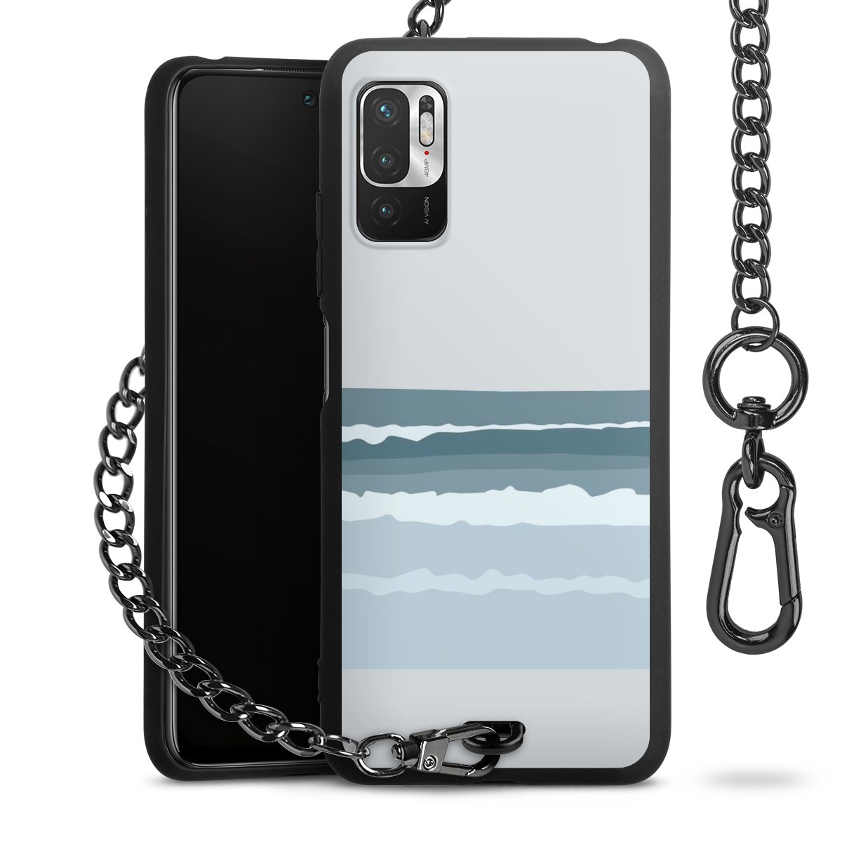 - Mattschwarze Handyhülle mit Metallkette