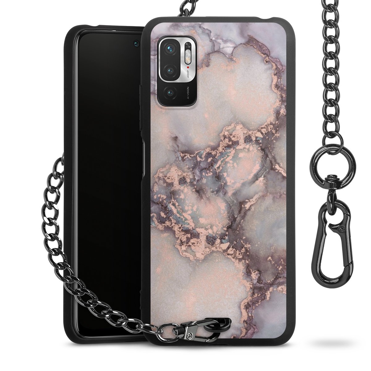 • Mattschwarze Handyhülle mit Metallkette